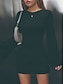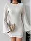Per donna Mini Abito Abito Bianco Abito da laurea Abito aderente Elegante Moda Moderno Manica del polsino svasato All'aperto Vacanza Uscire Vestibilità regolare Semplice Manica Lunga Girocollo Nero