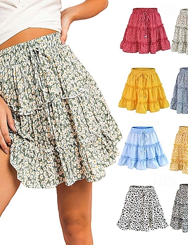 Per donna Moda Casual Mini Vita media Gonne Floreale Arricciato Coulisse Micro-elastico Quotidiano Streetwear Blu blu navy Giallo Rosso Estate Poliestere