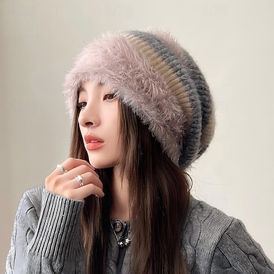 berretto morbido stile autunno inverno per donna copriorecchie in peluche cappello lavorato a maglia berretto caldo alla moda carino viso snellente copricapo premaman
