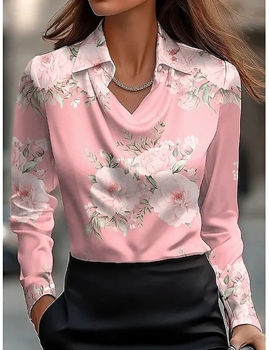 Camicia da donna Top eleganti Camicia formale da lavoro Grafica floreale Elegante alla moda Casual Maniche lunghe Collo drappeggiato Top regolari Lavoro Feste Sera Abbigliamento quotidiano Arricciato