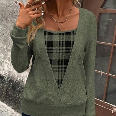 Per donna Camicia Blusa Stampato Plaid Elegante Essenziale Casual Manica Lunga Collo quadrato Top Regolari Quotidiano Ferie Rosa Primavera Autunno Inverno