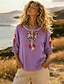 Per donna Camicia 100% cotone Arricciato Semplice Quotidiano Manica Lunga Scollo a V Top Regolari Lavoro Ferie Blu Giallo Rosa Viola Primavera Autunno
