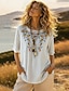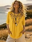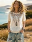 Per donna Camicia Blusa Finto cotone e lino Ricamato Stampato Floreale Vintage Elegante Manica Corta Girocollo Top Regolari Quotidiano Ferie Uscire Bianco Giallo Rosso Blu marino Viola chiaro Estate