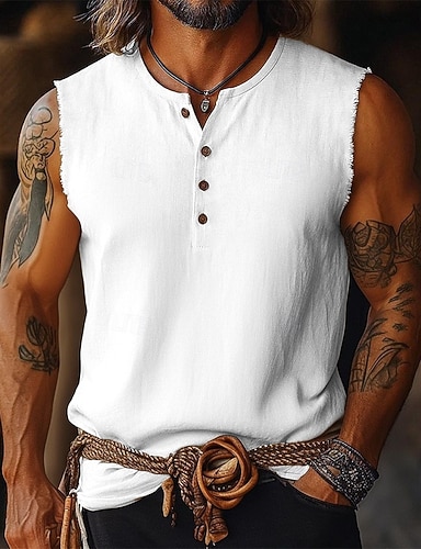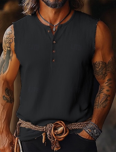 Per uomo Camicia di lino Canotta Gilet Canottiera Senza Maniche Con Cappuccio Estate Tutte le stagioni Semplice Moda Streetwear Classico Zip a un quarto Streetwear Casuale Sportivo Nero Rosa Blu