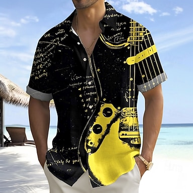 Per uomo Maestri del Consiglio Chitarra Strumento musicale Camicia Camicia Estiva Camicia con Bottoni Manica Corta Vintage Retrò All'aperto Vacanza Abbigliamento Quotidiano Estate Primavera Collo