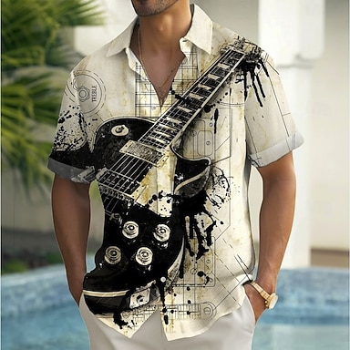Per uomo Chitarra Strumento musicale Camicia Camicia Estiva Camicia con Bottoni Manica Corta Vintage Retrò Festival Musicale Ferie Estate Primavera Collo ripiegato Stampa 3D Una tasca anteriore