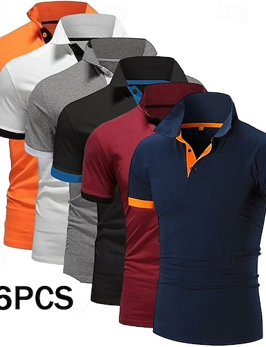 Polo da golf da uomo, 6 pezzi, casual, sportiva, classica, a maniche corte, tinta unita, tinta unita, confezione multipla da 6 pezzi, estiva, primaverile, per tutte le stagioni, vestibilità regolare.