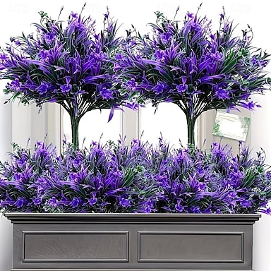 12 bouquet di fiori artificiali viola brillante con protezione UV, piante artificiali realistiche, adatte per decorazioni interne ed esterne, perfette per appendere fioriere e giardini.