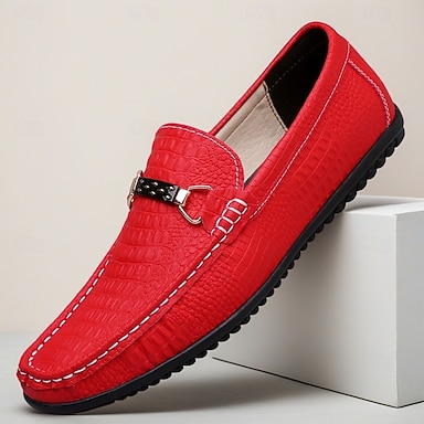 mocassini da uomo rossi con stampa coccodrillo, scarpe casual slip-on, mocassini da guida con inserto in metallo, ideali per l'uso quotidiano, viaggi, feste, ufficio, weekend e stile smart casual.