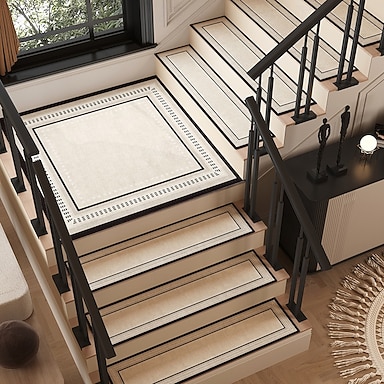 tappetini per scale in stile americano, autoadesivi senza colla, moquette per interni color crema per gradini, antiscivolo, lavabili, tappetini per scale resistenti per la casa, facili da pulire e