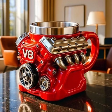 Tazza da caffè con motore V8, tazza da caffè in resina con tema retrò con motore V6, tazza in acciaio inossidabile con motore V8 realistico per marito, meccanico, appassionato di auto