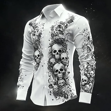 Costumi da uomo Maglietta a Teschi Camicia Button Up Camicia da Vestire Casual a Maniche Lunghe Stile Gotico Scuro Festa Estate Primavera 3D Stampa Camicie con Colletto Bianca 1 Nera Bianca