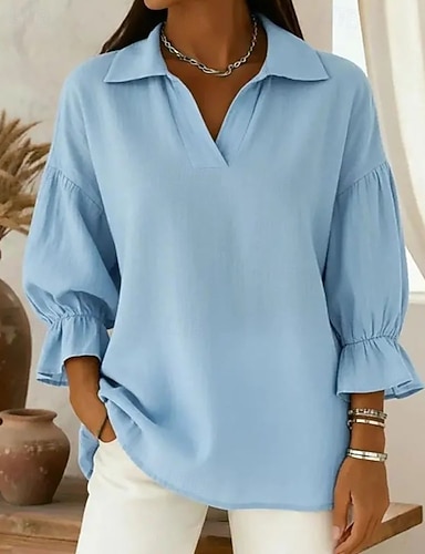 Per donna Camicia Blusa Patchwork Semplice Elegante Vintage Manica Lunga Colletto a Camicia Top Regolari Quotidiano Ferie Uscire Rosso Blu marino Azzurro cielo Viola Verde Primavera Autunno