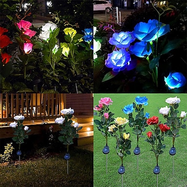 4 pz solare rose garden palo luci percorso esterno prato luci 3 teste 5 colori rosa solare luce di paesaggio multi-colore solare luce decorativa per percorso cortile