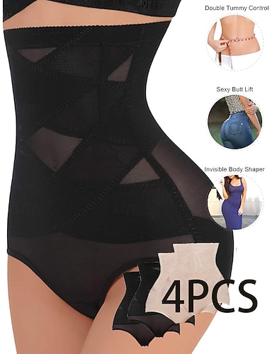4 slip da donna con elastico in vita, ideali per uscire, con design geometrico, classici, 2 neri + 2 beige.