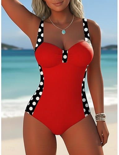Costume da bagno intero da donna Snellente Sottile Colorblock Briefs Elegante Vacanza Pois Geometrico V Neck Senza maniche