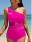 Costume da bagno intero da donna Arricciato Monokini Mesh Controllo della pancia Alta vita Slim Senza schienale Elegante Abbigliamento in vacanza Colore uniforme Halter Neck Senza maniche