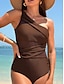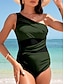 Woman's One Piece Swimsuit Slimming Ruched Sexy Cutout Monokini Tummy Control High Waist Slim Backless Elegant Vacation Solid Color V Neck Sleeveless Bathing Suits