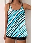 Costume da bagno Tankini da donna in 2 pezzi gamba dritta controllo della pancia vita alta slim schiena scoperta estate in spiaggia halter neck a righe geometriche senza maniche