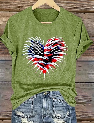T-Shirt da Donna per il Giorno dell'Indipendenza Grafica Bandiera Lettera Casual Maniche Corte Girocollo Top Regolari Quotidiano Stampa Nera Blu Marrone Estate Primavera