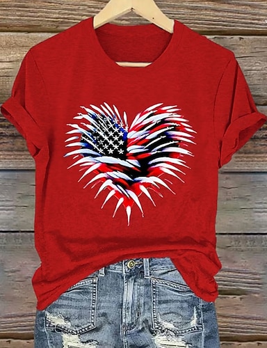 Giorno dell'Indipendenza Maglietta Patriottica da Donna Stampa Grafica Bandiera Bandiera Stile Vintage Moda Hawaii Manica Corta Collo a V Regular Tops Giornaliero Uscita Weekend Stampa Nera Rossa