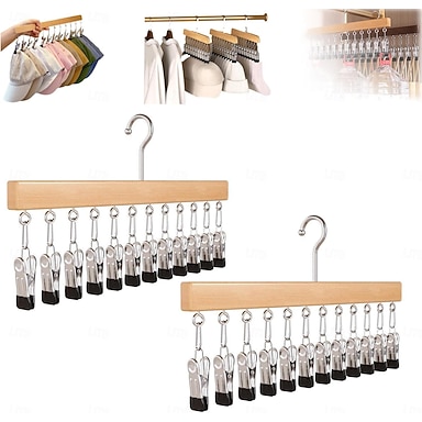 Confezione da 2 organizer per armadio con 12 clip, organizer per armadio salvaspazio, mollette per cappelli, sciarpe, jeans, gonne, calzini, pantaloni con clip