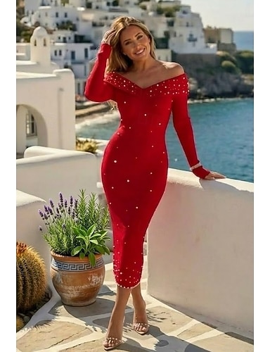 Per donna Abito Midi Abito da Ballo Vestito da Festa Abito da Cocktail Abito da invitata a nozze Elegante Moda Classico Festa serale Feste Occasione speciale Vestibilità comoda Semplice Manica Lunga