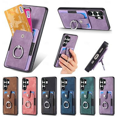 telefono Custodia Per S26 Ultra Plus S25 S24 S23 S24 FE S22 S21 Ultra Plus A55 5G A35 5G A25 Copertura Posteriore con Supporto Slot per Carte Resistente agli urti Retrò Pelle PU