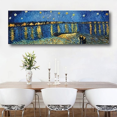 dipinto a mano pittura a olio di qualità del museo di van gogh - paesaggio astratto notte stellata sul Rodano moderna grande tela arrotolata