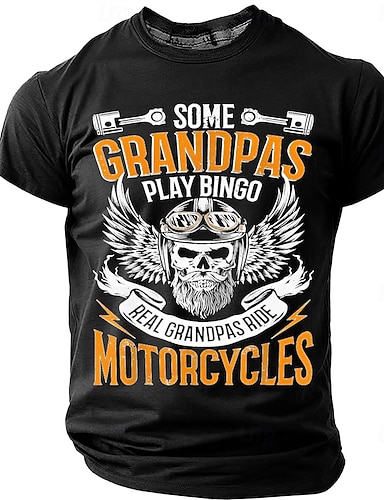 alcuni nonni giocano a bingo i veri nonni vanno in moto casco da motociclista da uomo con teschio e ali occhiali pistoni maglietta grafica hardcore girocollo manica corta maglietta da raduno