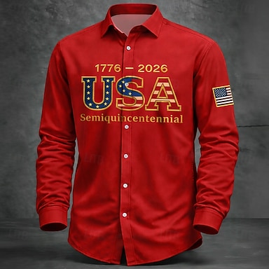 Per uomo 4 luglio, 250° anniversario degli Stati Uniti Bandiera degli Stati Uniti Patriottico Camicia Camicia con Bottoni Manica Lunga Vintage Retrò Ferie Casual Quotidiano Primavera Autunno Collo
