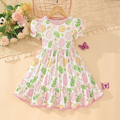 Pasqua ragazze' 3D Floreale Vestito Manica lunga Stampa 3D Primavera Autunno Da mare Sportivo Giornaliero stile sveglio Informale Bellissimo Bambino 3-12 anni Abito casual Abito linea A Sopra il
