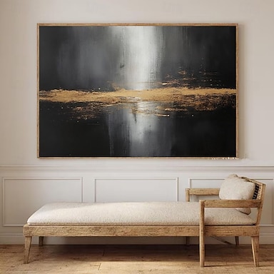 dipinto a olio regalo di Natale dipinto astratto nero e oro fatto a mano arte murale minimalista dipinta a mano decorazione murale astratta moderna regalo di Natale opera d'arte minimalista