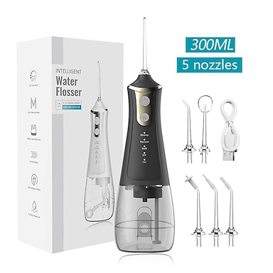 Regali di San Valentino per donne e uomini Irrigatore dentale portatile e ricaricabile 300ML con 5 modalità IPX7 impermeabile potente batteria per uso domestico e da viaggio
