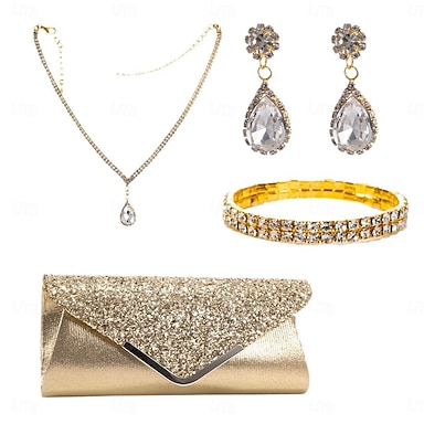 collana orecchini abiti borsa elegante &Lussuosa lega di strass in poliestere scintillante per gioielli da donna, bigiotteria e moda per cosplay