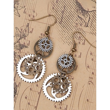 Orecchini a pendente in lega antica a forma di ingranaggio e chiave da Mardi Gras per donna - Accessorio industriale multicolore per carnevale e feste a tema