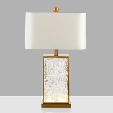 lampada da comodino lampada da tavolo in vetro lampada da appoggio creativa in metallo luce da comodino con paralume rettangolare per soggiorno camera da letto lampade da comodino