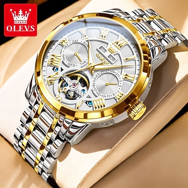 OLEVS Orologio Meccanico da Uomo Creativo Sportivo Moda Casual Automatico a Carica Automatica Calendario Perpetuo Luminoso Orologio in Acciaio