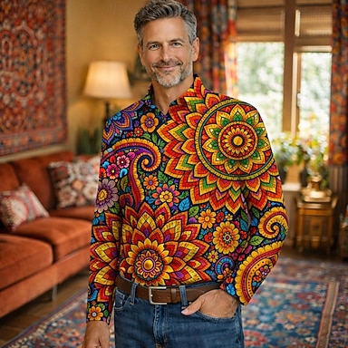 Retrò Vintage Anni '70 Camicia Camicia Aloha Lunghe Hippie Etnico Costume Per uomo Mascherata 4 Luglio Festival Musicale Feste Abbigliamento quotidiano Adulti Camicia