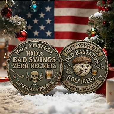 moneta da golf "over par old bastards", moneta divertente da sfida di golf per uomini con design a forma di whisky, monete per membri a vita di un club di golf, regalo divertente per giocatori e amanti del golf