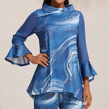 pantaloni da donna in tessuto elasticizzato, pannelli trasparenti in chiffon, gamba svasata, elastico in vita, eleganti, comodi, per tutti i giorni, da lavoro, autunno
