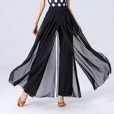 Pantaloni da ballo latino da donna a gamba larga con sovrapposizione in chiffon