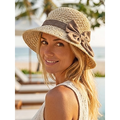 Cappello da donna in paglia bohémien con fiocco: vari colori, pieghevole per un facile trasporto, perfetto per un abbigliamento casual e per lo stile delle vacanze al mare