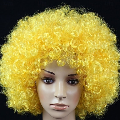 Parrucca di Carnevale 2026 Giallo Riccio Afro Corto Parrucca sintetica da festival Martedì grasso Parata Capelli per costumi da cosplay per Da uomo