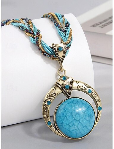 Collana in lega bohémien da donna con corda di perline multicolori, ciondolo dal design unico, perfetta per un abbigliamento casual e da festa