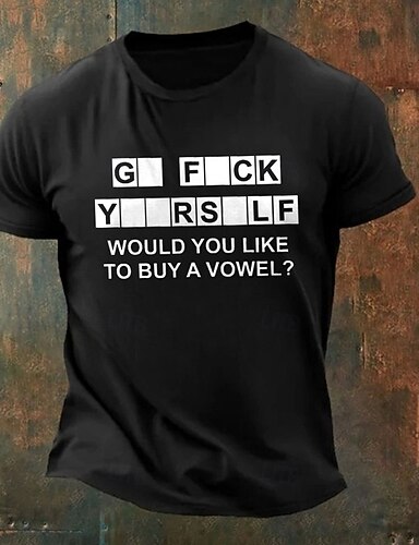 Maglietta Grafica Divertente da Uomo | Sarcastica 'Vuoi Comprare una Vocali?' Maglietta di Gioco di Parole | Parodia di Umorismo Maleducato
