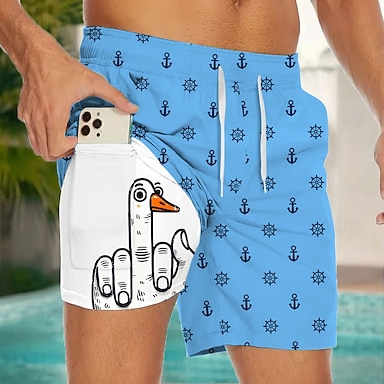 Per uomo Divertente Pesca Anatra Pantaloncini foderati Pantaloncini da bagno 2 in 1 Pantaloncini da mare Misura del girovita medio Hawaiano Vacanza Ferie Abbigliamento mare Tasche Laterali Con Fodera