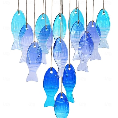 Campanelli a vento artigianali in vetro blu a forma di pesce - grande decorazione da appendere per esterni e interni, con vivaci pesci sferici, non necessitano di elettricità, adatti per giardini,