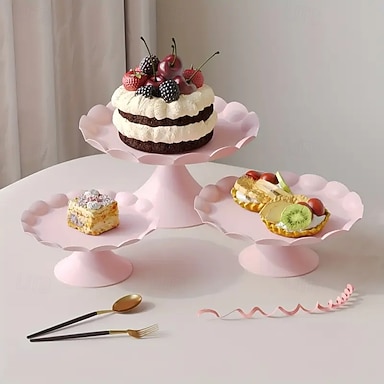 Piatto per dolci a tre pezzi con foglia di loto, fotografia, accessori per matrimoni, porta dessert in metallo per matrimonio europeo