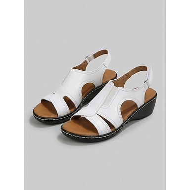sandali con zeppa bianchi da donna con ritagli – scarpe casual traspiranti con plateau per passeggiate, viaggi, vacanze, feste in giardino e uso quotidiano